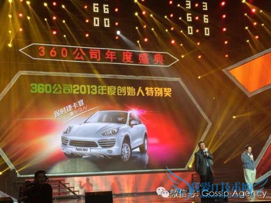 当场,周鸿祎明显来了劲头,转发微博说:“明年我希望360的奖金不是千万级别,而是上亿,360对那些敢想敢干,坚韧不拔,能带领团队做产品追求极致的牛人,是从来不吝于重金奖励的。明年的360年会,不仅是股票期权,我还希望能奖出10辆百万元的保时捷卡宴!