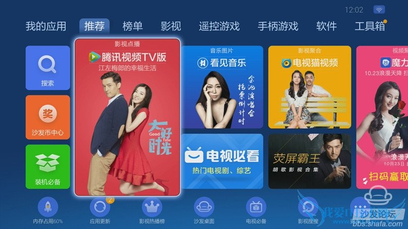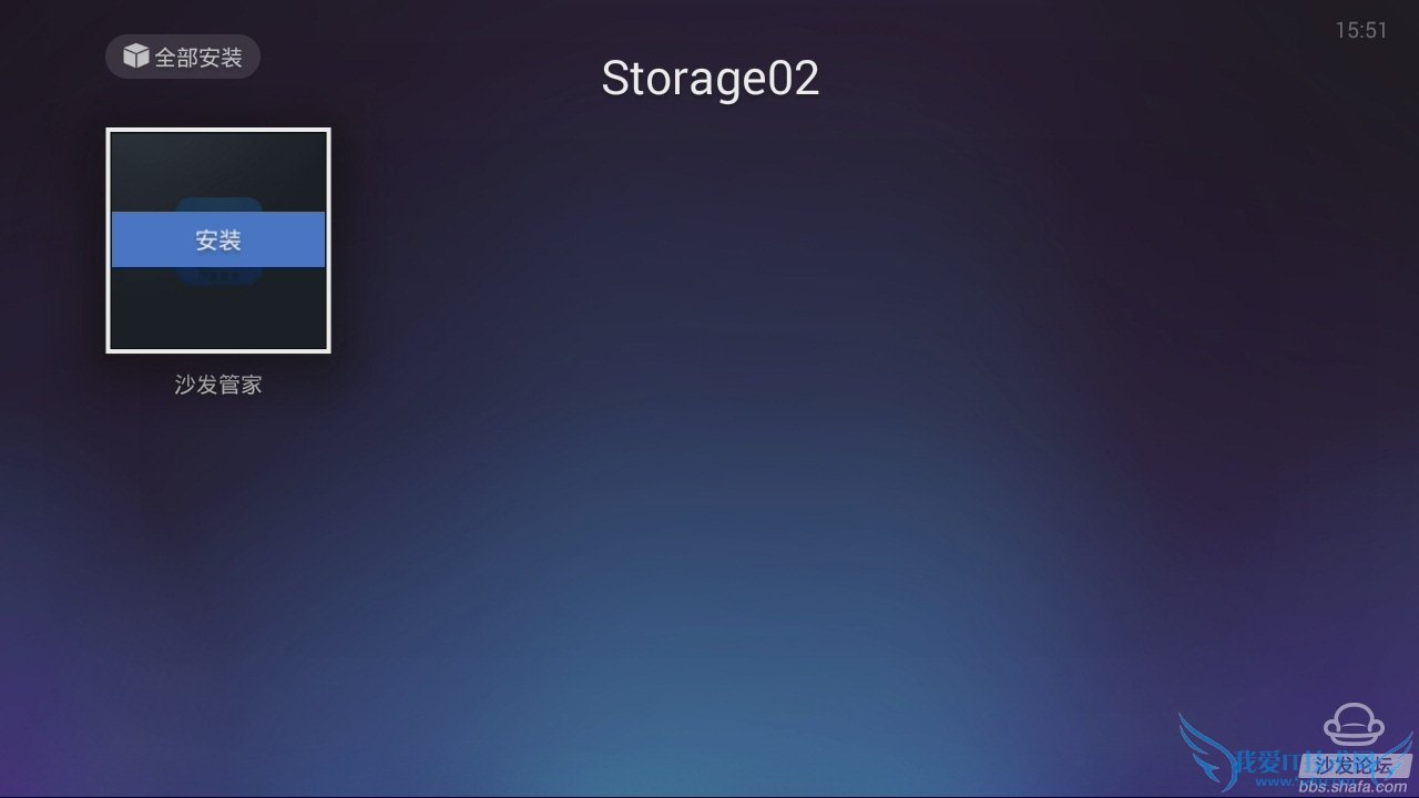 2 下载沙发管家存入U盘,将U盘插到盒子的USB接口上,弹出提示。选择“应用”,按OK键确认,