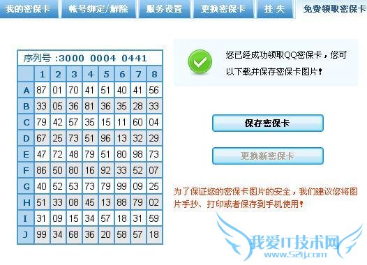 2)您可以直接登录QQ密保卡网站,免费领取图片密保卡,保存到电脑、邮箱或者手机。温馨提示:一个QQ号码每5分钟只能领取一张密保卡,每天最多领取3张。