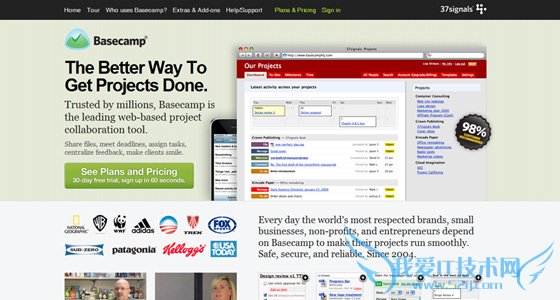 Basecamp是基于互联网的项目协作最主要的工具。它具有共享文件,限定最后期限,分配任务,集中反馈,满足客户要求的功能,用户数量达数百万。(这是由37signals公司旗下的产品。)