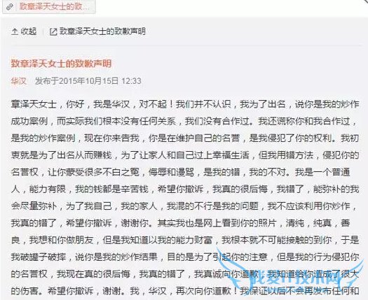 “人至贱则无敌”:当法院要求华汉向奶茶妹妹在搜狐网和个人微博上刊登致歉声明,并赔偿相应损失费时,他的姿态是这样的: