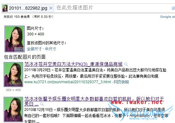 这个人一定都认识吧,呵呵,苍井空老师。开始测试,先上传到谷歌相似图片搜索得到结果如下: