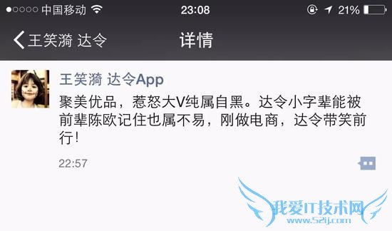 王笑漪也予以回击,聚美优品,惹怒大V纯属自黑。达令小字辈能被前辈陈欧记住也属不易,刚做电商,达令带笑前行!