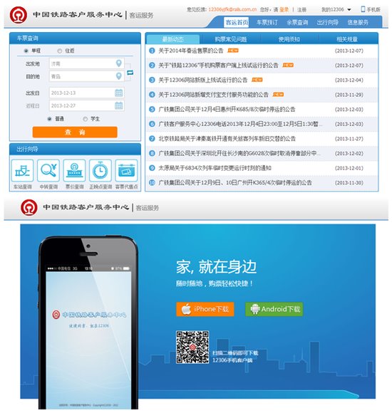 千呼万唤始出来,继上周五新版可以自动刷票“抢票”的12306网站面世后,昨天,被网友期盼的中国铁路12306手机客户端终于正式亮相。仅截至昨天下午5点,已共有20余万客户下载体验,支付购票用户近2万人。但是,也有网友表示,这套系统虽然操作简单,但流畅度差。