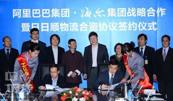 12月6日,阿里巴巴集团董事局主席马云将其首个青岛之旅,放在了与海尔集团董事长张瑞敏的签约仪式上。根据合作协议,阿里集团将以总价28.22亿港元投资海尔集团旗下香港上市公司海尔电器,并购买海尔电器旗下日日顺物流未来最高34%的股权。