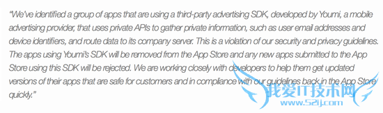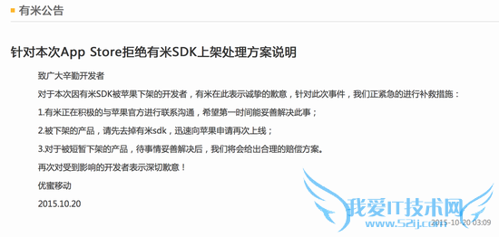 随后,苹果确认了这一消息,并下架了所有使用有米SDK的应用,并表示以后任何使用该SDK的应用都不会通过审核。