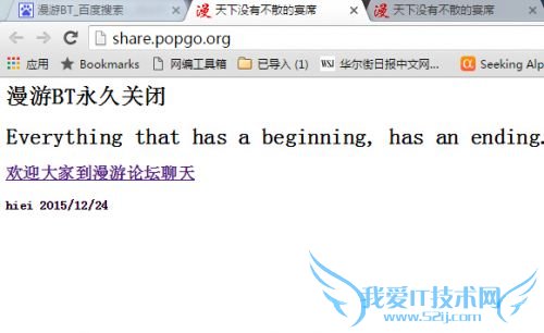欢迎您访问我爱IT他技术网,本文给你带来的分享是【动漫下载网站漫游BT官网发布永久性关站声明】,下面是详细分享。