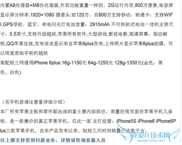 在 58 同城的 iPhone 信息中,山寨品很容易从价格上区分,通常标价几百块但在商品描述中极力混淆概念误导用户,让人以为是真的 iPhone,将 58 同城彻底卷入售假风波正是这类商家。