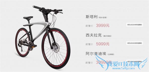 乐视三款自行车的售价相差极大,斯塔利铝合金版售价 3999 元,西夫拉克碳纤维版售价 5999 元,阿尔普迪埃全碳版售价 39999 元,均在 8 月 12 日 10 点开启预约。其中铝合金版没有指纹识别功能,机身材质、座椅、变速器有差异。
