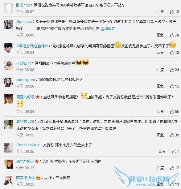 欢迎您访问我爱IT技术网,今天小编为你分享的是新闻资讯是:【凤姐回应周鸿祎马化腾躺枪 一声周哥哥叫得好亲热】,下面是详细的分享!