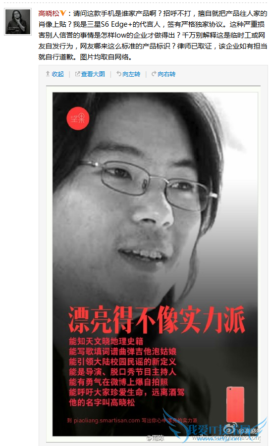 欢迎您访问我爱IT技术网,今天小编为你分享的是新闻资讯是:【坚果手机海报涉嫌侵权引发不满 高晓松大战罗永浩三回合分胜负】,下面是详细的分享!