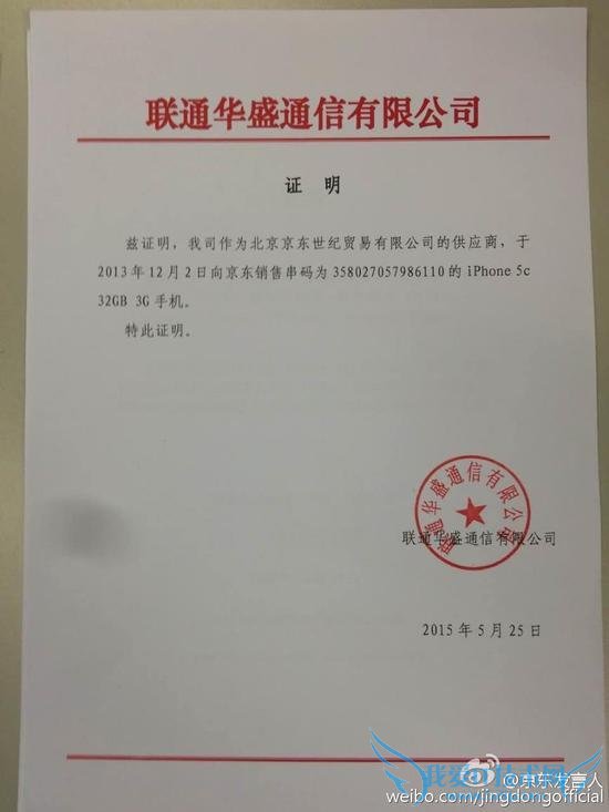 京东起初声称获得苹果的销售授权,在苹果官方否认之后,转换说法,推出供应商联通华盛,而联通华盛是具备苹果授权的经销商。联通华盛昨天也给出了证明文件,表明媒体报道中的两款手机来着自身,同是给出苹果的官方授权证明,声称其供应的 iPhone 全部是采购苹果公司的正品行货,从未涉及 iPhone 翻新机的销售,也表示愿意做好配合调查。