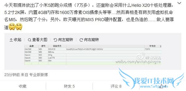 再来看造假的 S7、Mi5 、MX5 Pro 等产品,不是虚拟机就是 PS,也许是网友的游戏之作,也许是媒体为了博取眼球的凭空捏造,但不过换怎样,这些毫无意义的分数本不应该如此受到关注。
