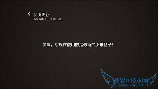 4、升级完毕后务必确认当前盒子的软件版本。进入小米盒子设置—系统升级—查看当前版本为 1.3.88 (稳定版) ,正常使用就可以。