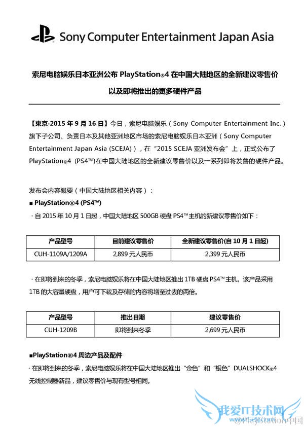 欢迎您访问我爱IT技术网,今天小编为你分享的是新闻资讯是:【索尼PS4国行降价500元 1T版冬季上市】,下面是详细的分享!