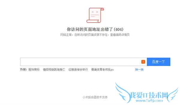 1.我们极度重视用户的体验,“404”是空白页面和错误代码,我们在其中加入快捷搜索旨在网页出错时帮助用户更便利的继续浏览。很多系统和浏览器也做了类似的功能,用户如果不需要,通过小米路由器的手机 APP 即可关闭。