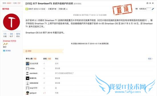 关于锤子T1不升级安卓5.1真相 赶T2产能老罗人手不够?的用户互动如下: