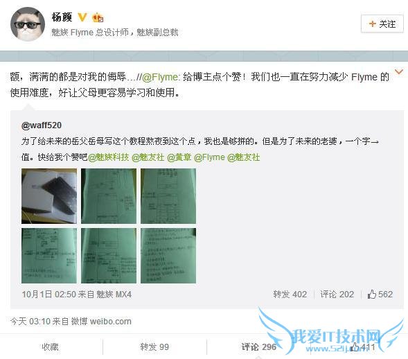 欢迎您访问我爱IT技术网,今天小编为你分享的是新闻资讯是:【小伙给未来岳父手绘魅蓝2说明书 魅族总设计师大呼这是侮辱】,下面是详细的分享!