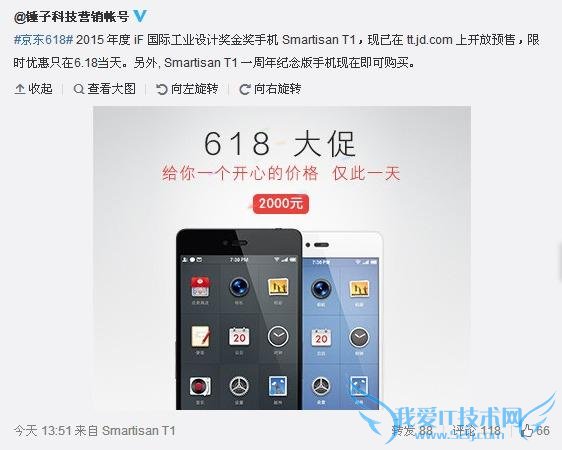 关于奋战618锤子手机也降价 只卖2000元仅限当天的用户互动如下: