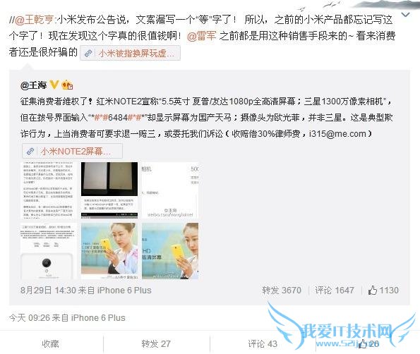 欢迎您访问我爱IT技术网,今天小编为你分享的是新闻资讯是:【王海炮轰小米继续深挖 王自如评测坚果视频遭打假】,下面是详细的分享!