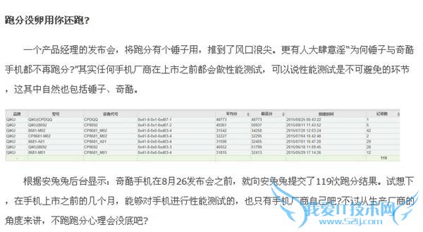 欢迎您访问我爱IT技术网,今天小编为你分享的是新闻资讯是:【跑分有锤子用遭安兔兔反击 360奇酷手机发布前偷偷跑分119次】,下面是详细的分享!