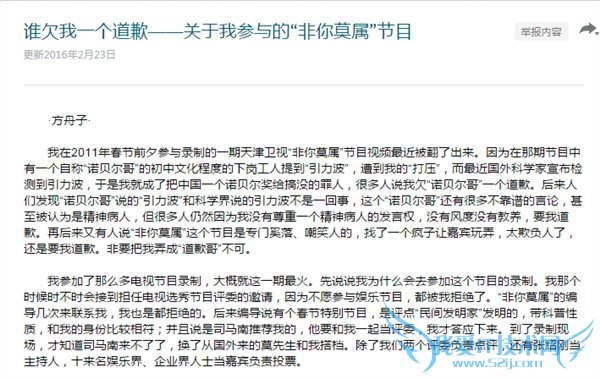 以下是方舟子《谁欠我一个道歉——关于我参与的“非你莫属”节目》的原文: