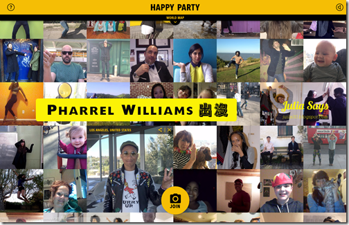 跟着 Pharrel Williams 开一场 Happy Party 吧! 上传四张自拍照秀出你的快乐