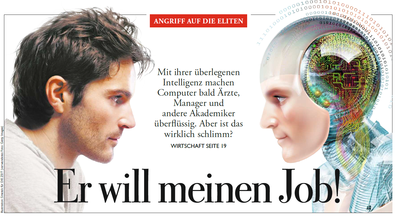 德国 《时代》 周报七月十日第十九页开始有这样一篇文章 《他比我们更能干吗?》, 作者 Roman Pletter。 说的是人工智能技术对当今就业市场的冲击。 可以和大家分享一下大致内容。