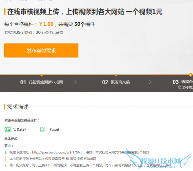 您可以到“猪八戒”等威客平台发布任务,让威客帮您上传视频,每上传成功一个您就为他们结算佣金。这样就会有很多人为您上传视频,您的视频就能在短时间内把数量提升上去。但是这里方法有个缺点就是威客只会帮您把视频上传,对视频标题、简介和标签等信息不会太用心。这里就需要您在描述任务时把要求描述得非常详细才行。