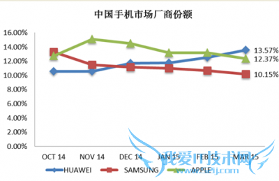 业内一些人士替华为争辩,集中在两个方面,与我上面谈的情况类似。引用GfK的数据:华为3月份国内市场第一,份额达13.57%,而前两个月份的份额也基本在11%以上,所以,认为IHS的数据是有问题的。