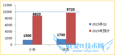 (图3:按照Q1销量及往年数据测算华为、小米2015年全年销量)