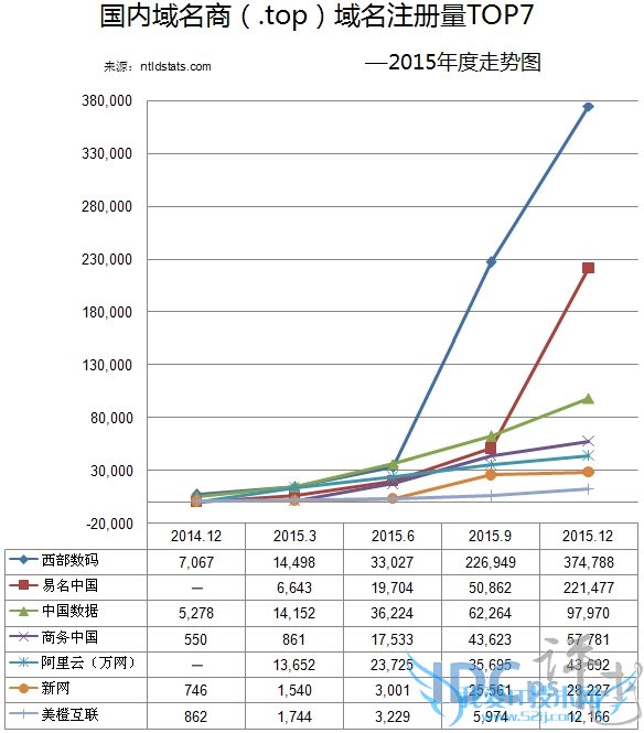 (图1)国内域名商(.top)域名注册量TOP7-2015年度走势图