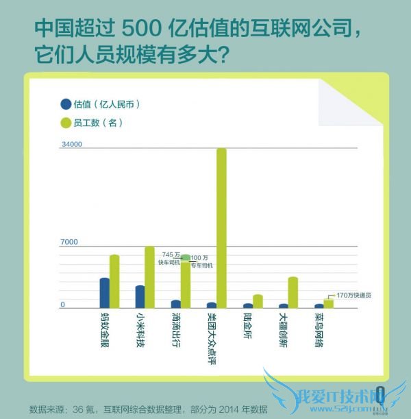 互联网公司的运转建立在巨大的人力消耗成本上,菜鸟也不例外。你可以看下下图中的美团大众点评;同样的,滴滴出行员工数虽然是 3000 多,但有 100 万专车司机和 745 万快车司机,这些也都是它的间接员工。