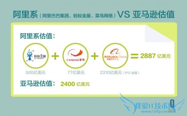 菜鸟网络、蚂蚁金服和淘宝天猫一起,构成了阿里系(基于电子商务)的三大战略业务。三者的估值目前总计 2887 亿美元,超过电商起家的亚马逊。
