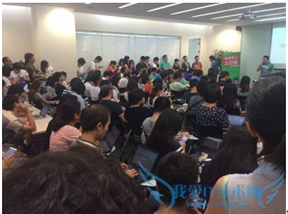 土巴兔装修学堂上,有近百名人员前来听课。由于土巴兔授课老师富有激情的精彩授课,不断有人员进来听课,土巴兔课堂现场,很多前来听课的人员站在过道两边听课。