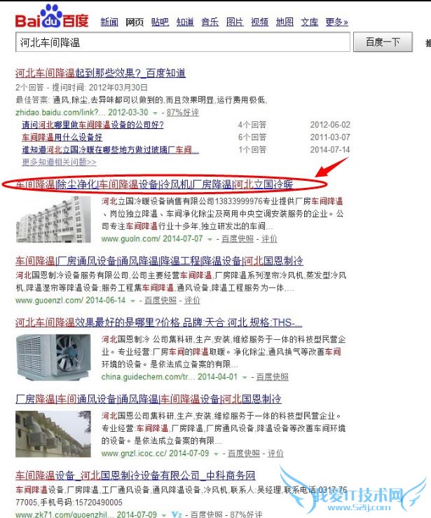 经过每天与A5的接触,坚持70%的文章自己写,30%的摘抄修改,再把文章分享到博客、微博以及百度贴吧等地方,经过3个月零9天,百度了一下其中一个比较实用的关键词“河北车间降温”,给我带来了一丝惊喜和鼓励,截图展示如下: