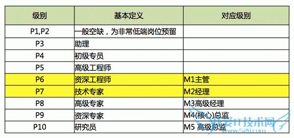 阿里的非管理岗分为10级
