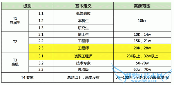• 最后,来张BAT级别对照表