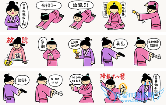 两个表情主角,男一号叫小山,圆脑袋顶着锅盖头,穿件粉红色上衣;女一号叫思子,扎俩小辫,搭配紫色衣服。外形虽简洁,但表现出的各种或贱或萌的姿态言语,让它俩在微信用户的口口相传间火了。