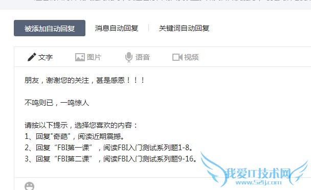 特别是我们需要去找大号带的时候,我们特别需要注意的环节就是我们自动回复的引导,这个我们可以参考其他大号的回复模式来做。因为这些粉丝都是从其他大号里面引导来的,在那些大号里面他们已经习惯了那些自动回复。如果说来到你的公众号,新关注以后没有什么回复,只是一个感谢的话,那么他是对你没有什么兴趣的。因为我们粉丝不是每个人都和我们一样,对于公众号的许多性能都不是很了解,那么久需要我们去引导了。