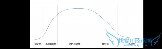 任何事物都是有生命周期的,大部分群都经历了如上图所示的生命周期模型,一个群走完整个生命周期模型长则6个月,短的甚至只需要1周。