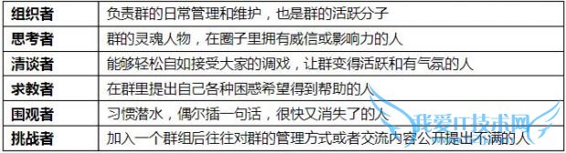 在社交群里比较尴尬的身份是求教者,虽然有时求教者可以给思考者带来好的话题去展开,但如果提出的问题非常初级,加上缺乏良好的沟通技巧,对有影响力的思考者反而形成了一种负担。如果思考者回答方式过于粗暴,或者组织者缺乏疏导技巧,求教者认为群缺乏分享精神,个人尊严受到歧视,瞬间就会变成挑战者,最后的结局往往是被踢出局。当然好的一面是如果求教者的问题得到好的回答,他会变成群中积极的组织者。