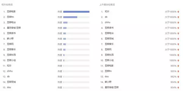 百度指数,豆瓣用户热门搜索词,2014/12/15-21