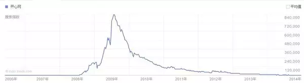 社交网站往往要蹿红不难,但难在如何留住人。开心网最高点(出现在2009/7/26这周)百度搜索指数高达833,378,这是相当惊人的(淘宝的历史最高点也只有113万),但大家都是成年人,“偷菜”什么的,毕竟很容易玩腻掉,真正能长久的,必须和现实中的人际网络、人的兴趣需求贴得更近才行。当用户粘性变差时,失败是不可避免的。2011年,在开心网已显露出明显衰落征象时,其CEO程炳皓曾在一次高峰论坛上提出social marketing的概念,意即通过人际推荐的方式来推动营销,但在中国社会中,这种熟人推荐方式往往会破坏而非增进人际关系,此事不久遂不了了之。