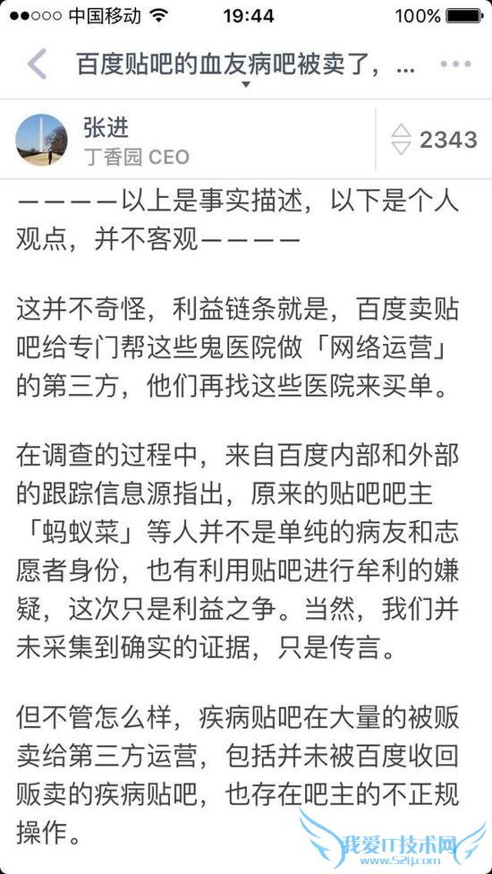 然而,对于百度员工王文远来说,移动互联网、流量分发、趋势和失控,都无法抵消他对此次事件“有阴谋”的看法,他不回避百度贴吧本身存在的问题,也觉得“KPI压力”和“商业化短见”应该通过此次事件得到根本性转改。