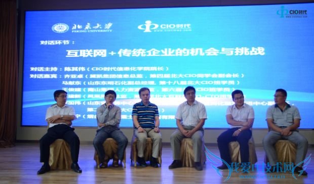 主题演讲结束之后进入到本次论坛的对话环节,对话环节由CIO时代信息化学院院长陈其伟先生主持,冀凯集团信息总监,第四届北大CIO同学会副会长齐亚卓、山东东明石化副总经理, 第十八届北大CIO班学员马献东、南山集团人力资源总监,第六届北大CIO班学员王俊建、凤凰网IT总监,第二届北大互联网CIO-CTO班学员王建新、山东省计算中心互联网运营总监,山东省两化融合促进中心副主任,第二十届北大CIO班学员李加伟、烟台中集来福士海洋工程有限公司经理苏振宁参与了对话研讨,共同就“互联网+时代传统企业的机会与挑战”这一话题展开讨论,各位嘉宾首先分析自己企业的优势劣势所在以及目前发展面临的难题,也分享了互联网+能够为企业带来的新机会以及企业在互联网+道路上面临的新问题,大家各抒己见,从各自产业出发,谈痛点、找方向,分享各自成功经验!