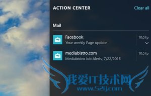 Cortana的提醒和其他更新等通知都是从右下角弹出。提醒将会进入用户的视野并停驻直到用户进行了处理。但是邮件只会进行短暂的出现,发件人的姓名,主题和第一行文字会在磁贴上滑动,随后便归档到了Outlook,Mail或者其他程序里。