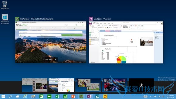Windows 10的多任务视图允许你在多个虚拟屏幕上安排多个软件,除了你正在运行的程序之外都隐藏在该程序下面。