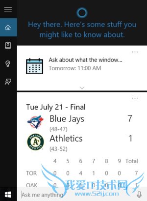 点击搜索栏,Cortana提供了方便有用的信息概览