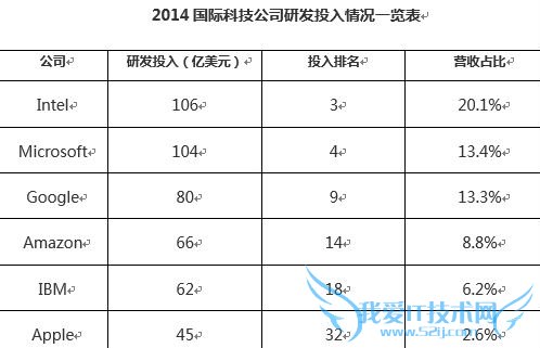 与百度、Google等技术型公司大力投入R&D(研发)收入形成强烈反差的是苹果2014年研发投入仅为45亿美元,在营收中占比仅为2.6%,算科技公司中研发投入最吝啬的公司。控制研发投入带来了巨大的盈利能力,苹果被资本市场追捧,市值刚刚进入7000亿美元打破记录。一边是高投入被资本市场冷落,一边是低投入被资本市场宠爱,研发投入看上去与盈利能力和市值表现呈现出了明显的“负相关”。百度似乎已经做好心理准备,在技术上高投入已成为百度发展基线。